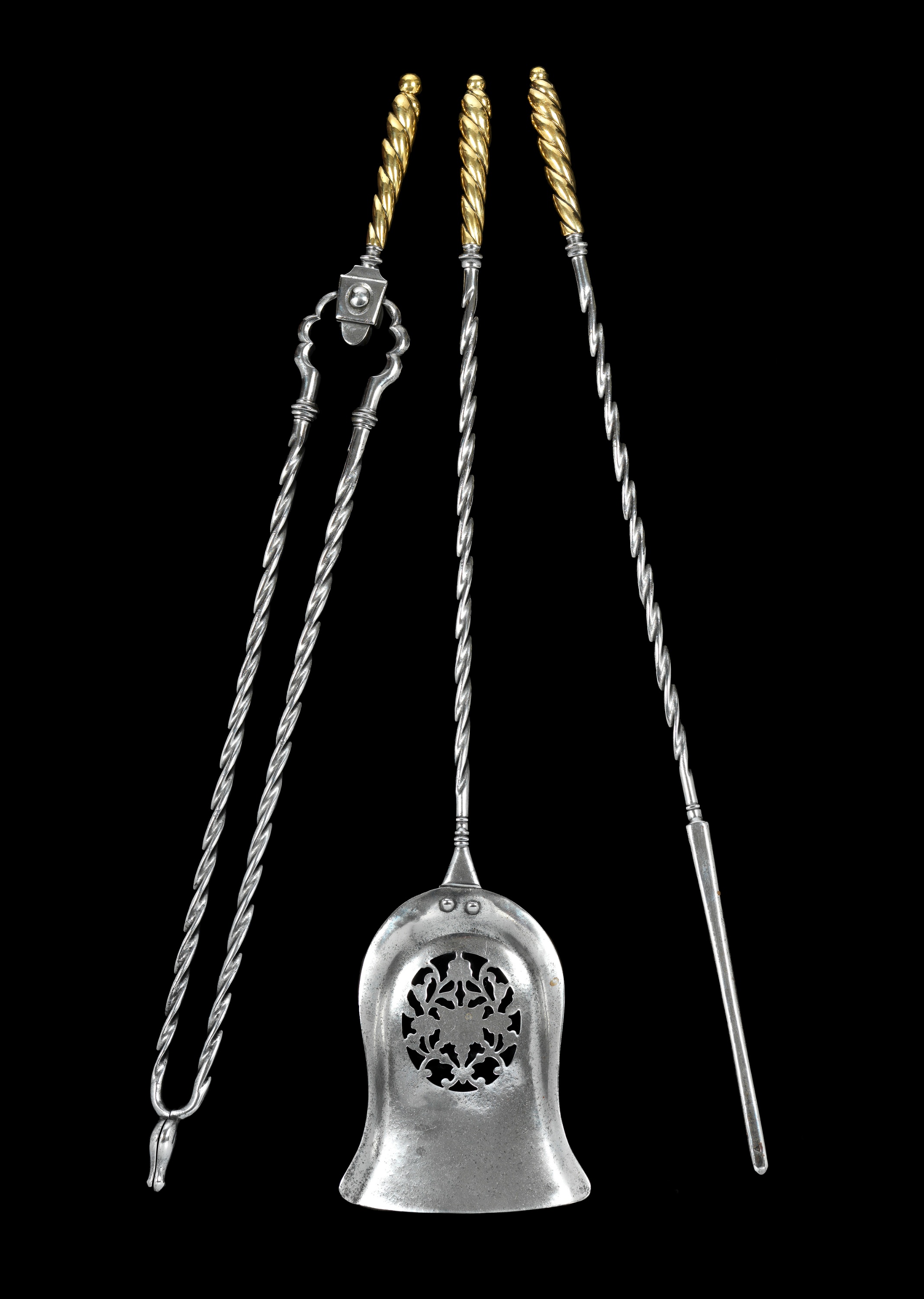 With twisted brass knob handles and twisted steel stems.
