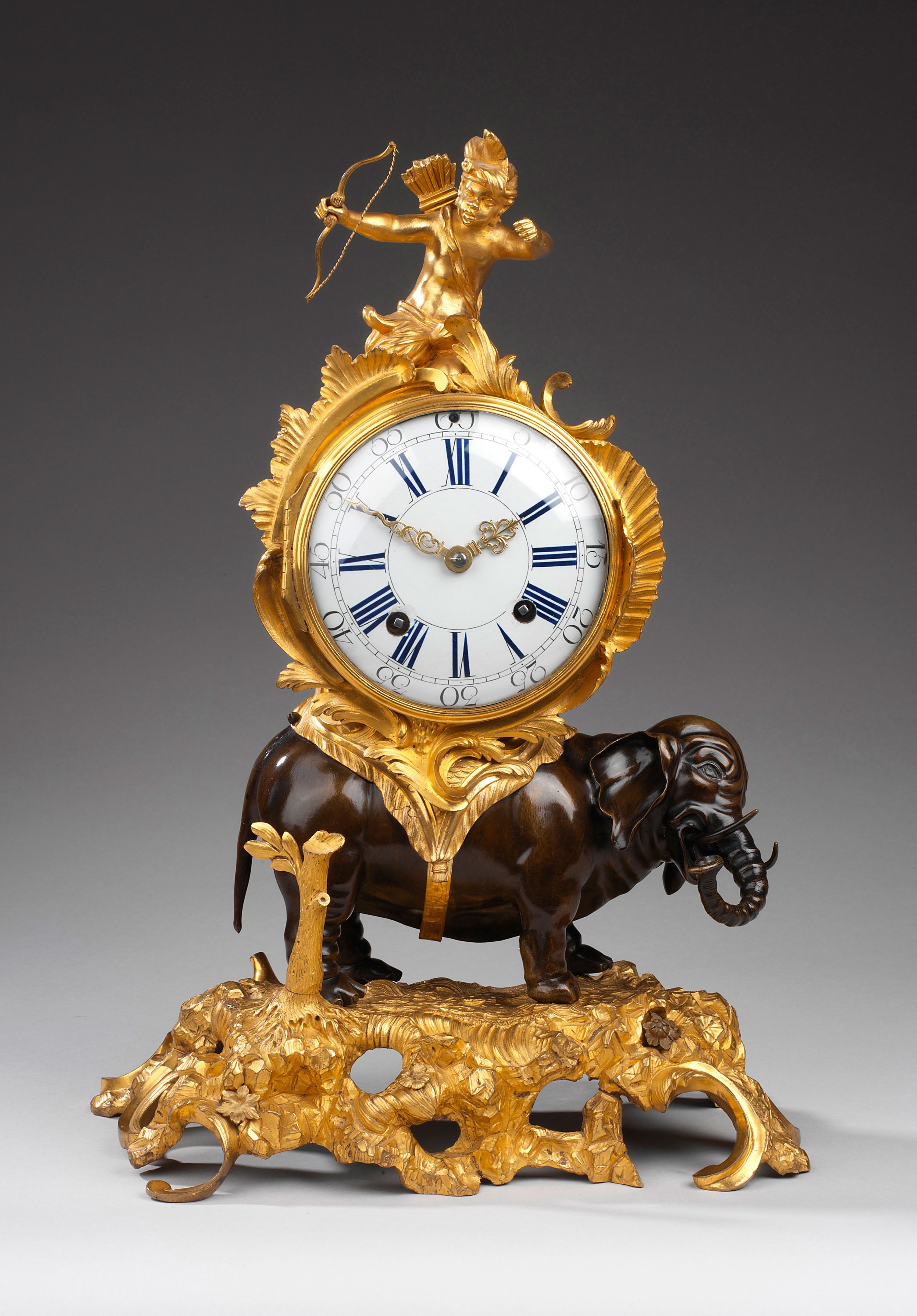 The back plate of the works of the clock is signed by Le Foré, Paris and the ormolu case is stamped on the rear door with Emanuel.