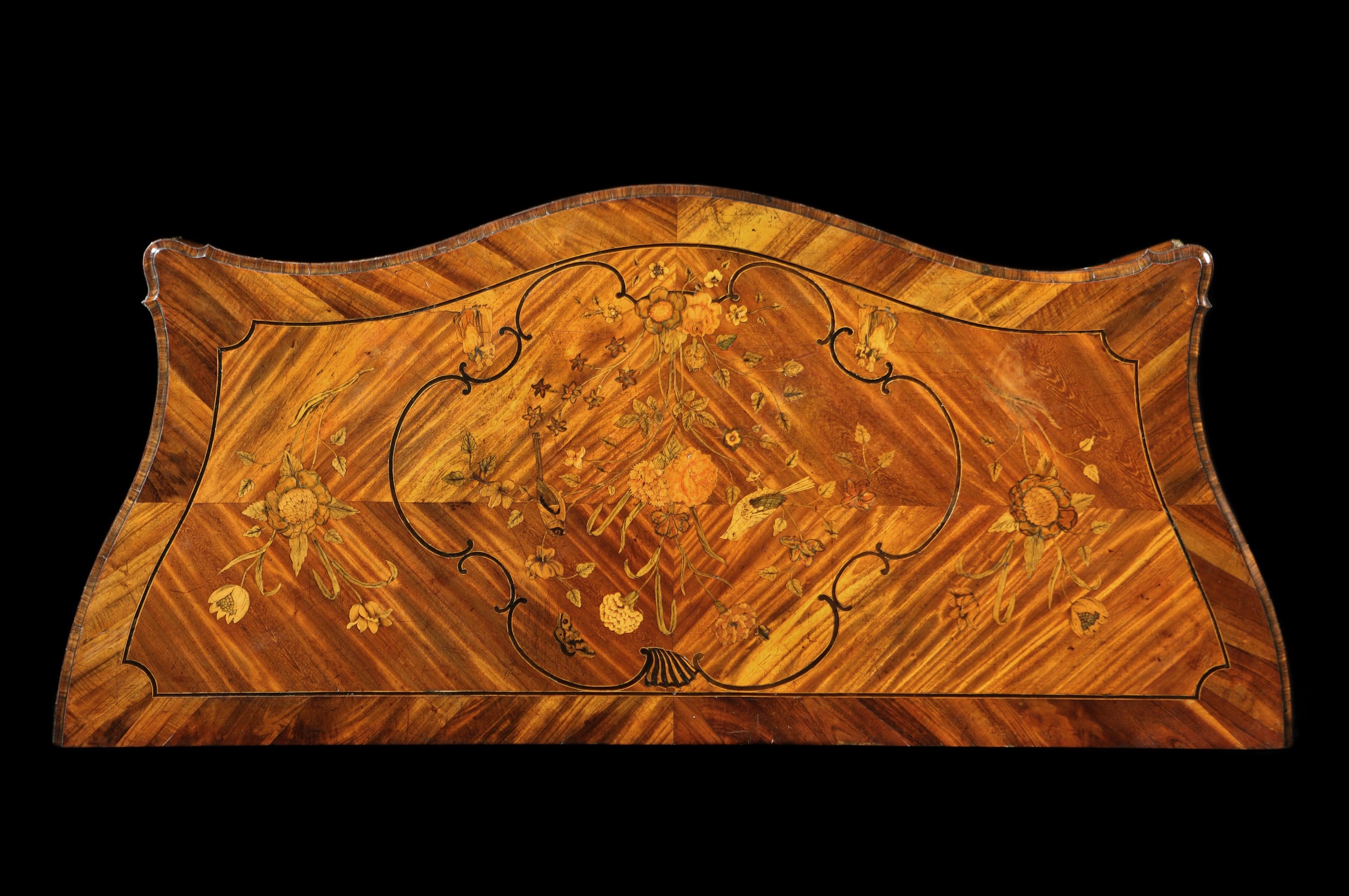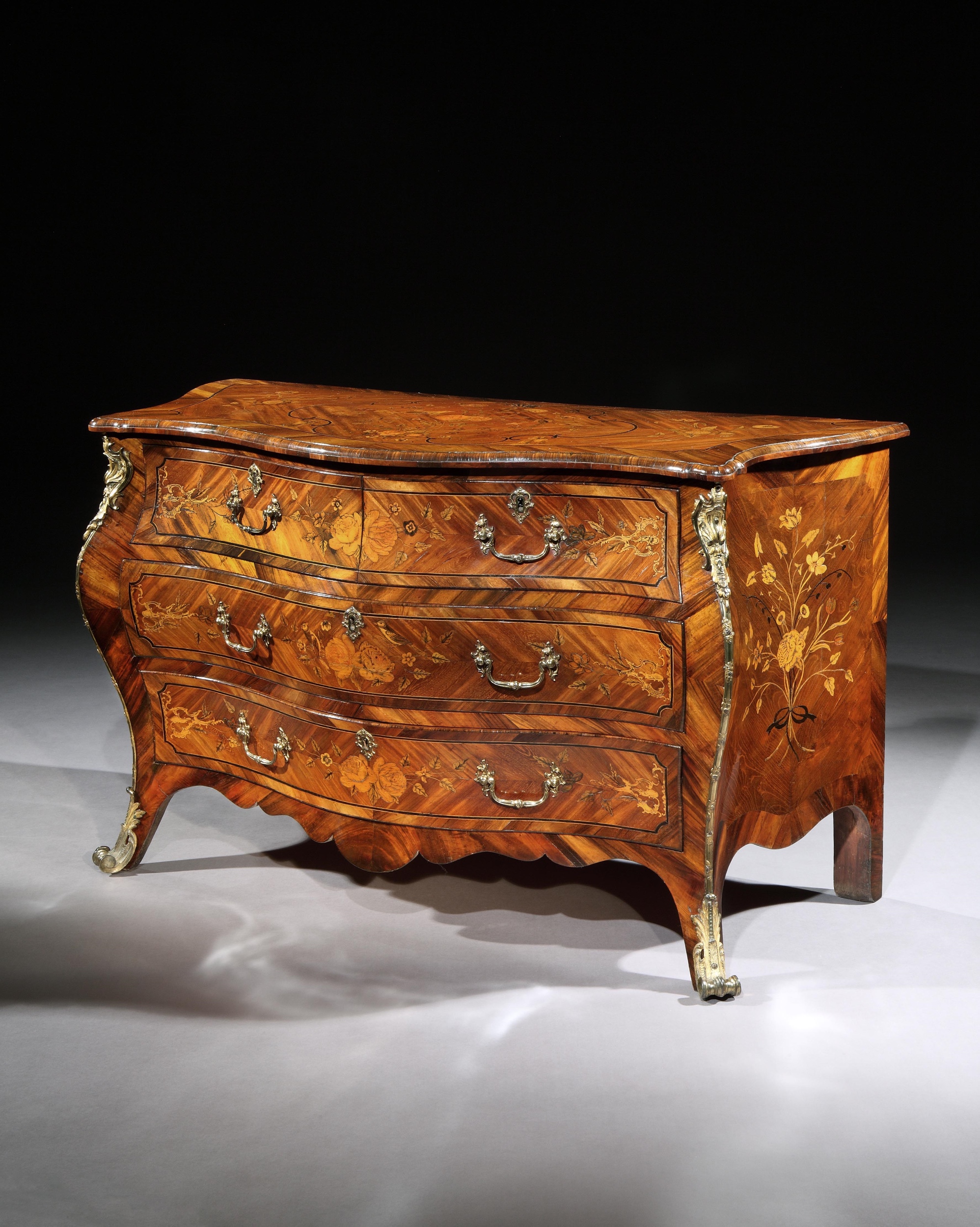 Henry Hill ran a thriving business in rural Wiltshire in the town of Marlborough. Hill’s high quality furniture is often compared to and sometimes superior to that of leading London workshops. His ability to adapt to fashionable French bombé shapes and his use of fine marquetry veneering suggests that he either trained in France himself or spent time with a French trained cabinet-maker.