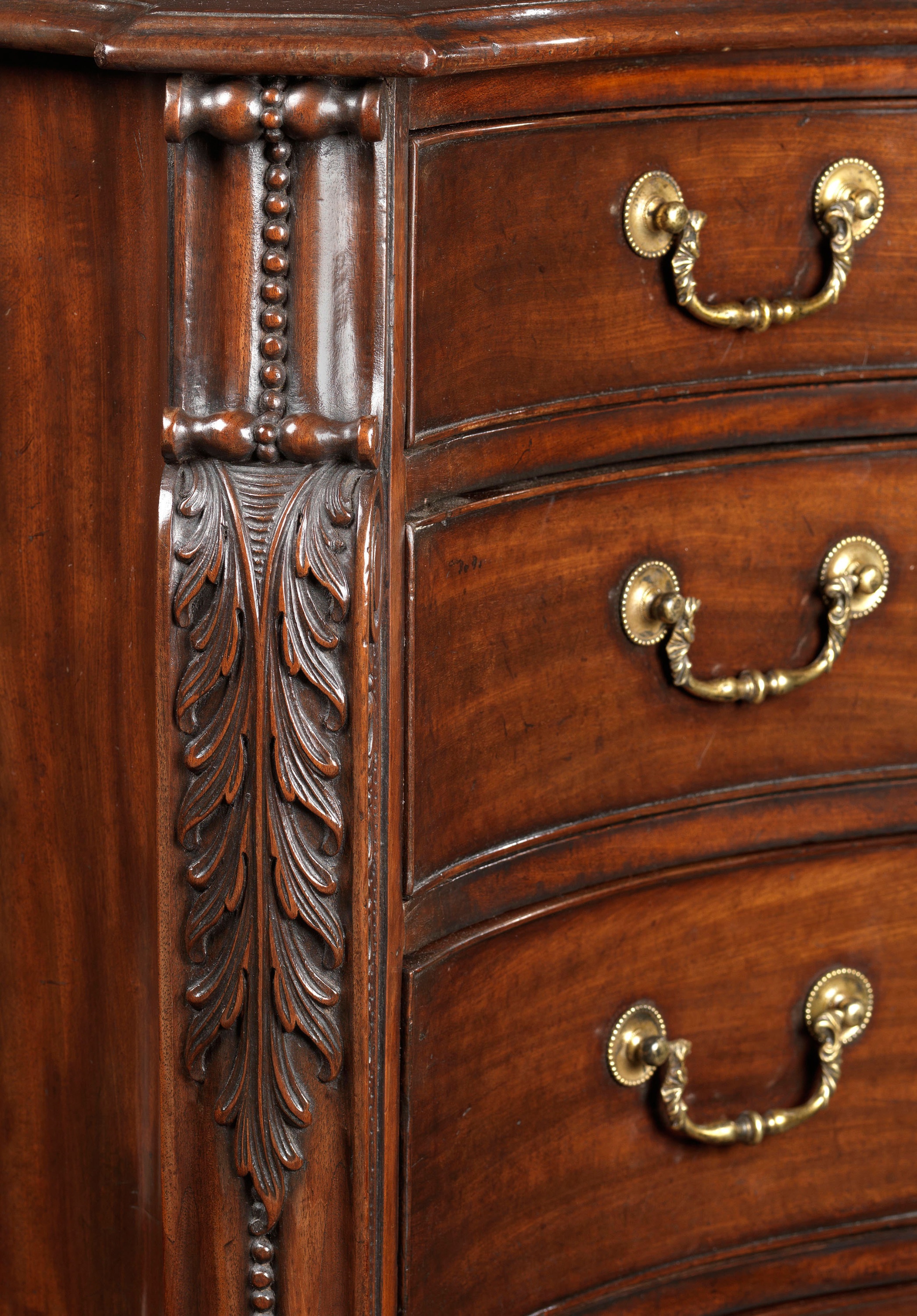 As this commode is of such fine quality, it is likely to have been made by either William Hallett, William Vile or John Bradburn, all of whom were engaged in making for the Royal family. The Garvan commode, illustrated in Hotspur 80 years of Antique Dealing Pg 201, is attributed to William Hallett and has similar carvings on the chamfered front corners. A considerable amount of furniture has over the years been attributed to William Vile, but as he published no designs, nor are any original drawings by him known, it is not possible to make a firm attribution. A very similar commode was exhibited in the Grosvenor House handbook in 1959 by H.C. Baxter.
