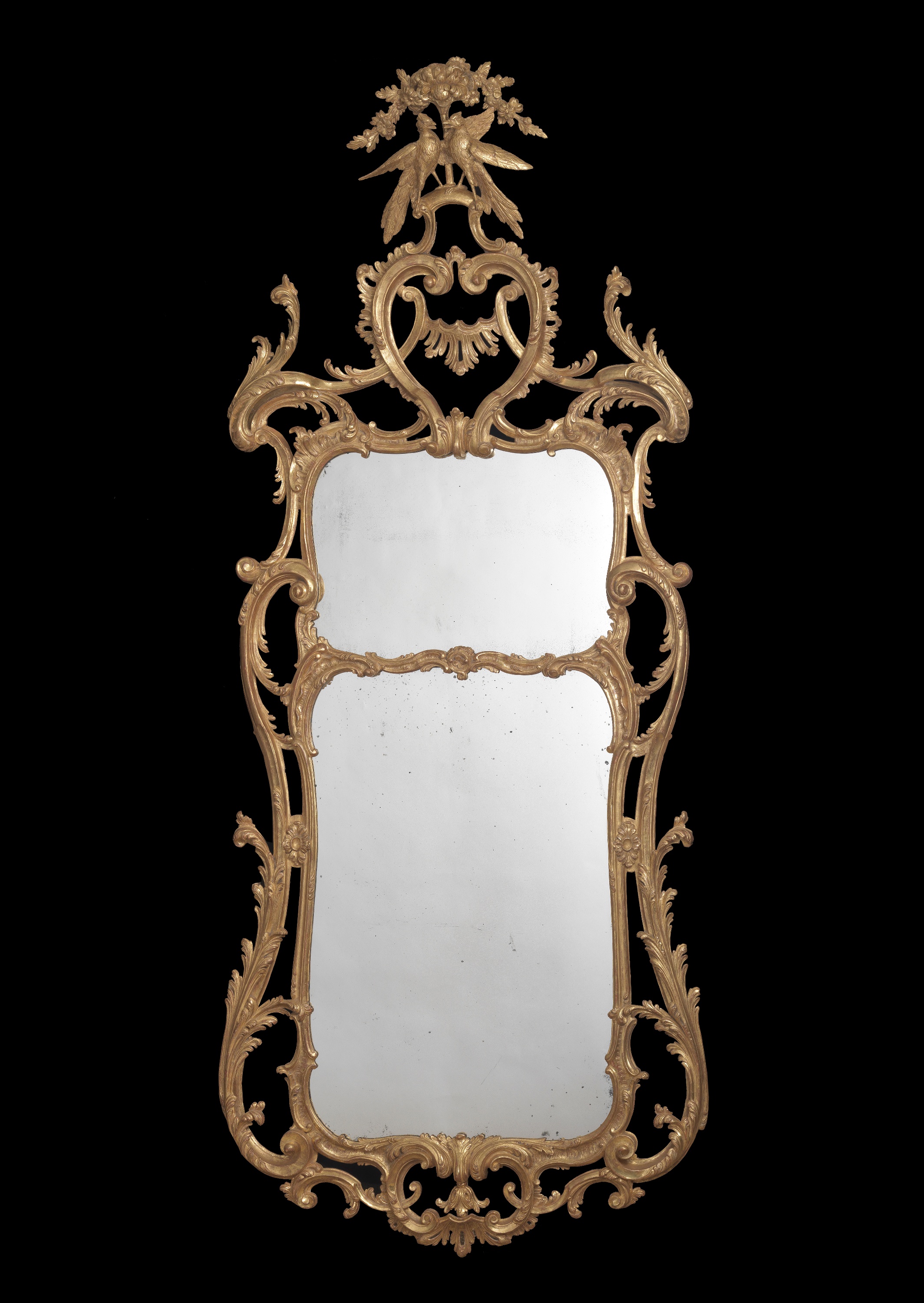 A. Denney, Burton Hall, privately published, 1950, the pier glasses in the Drawing Room.This fine pair of Rococo pier glasses was possibly supplied by John Cobb (d. 1778), cabinet-maker and upholsterer of 72 St. Martin’s Lane, London to John, 2nd Baron Monson (d. 1774) for either Broxbournebury, Hertfordshire (the Monson country seat until 1790), or the family’s principal residence after 1770, Burton Hall, Lincolnshire.