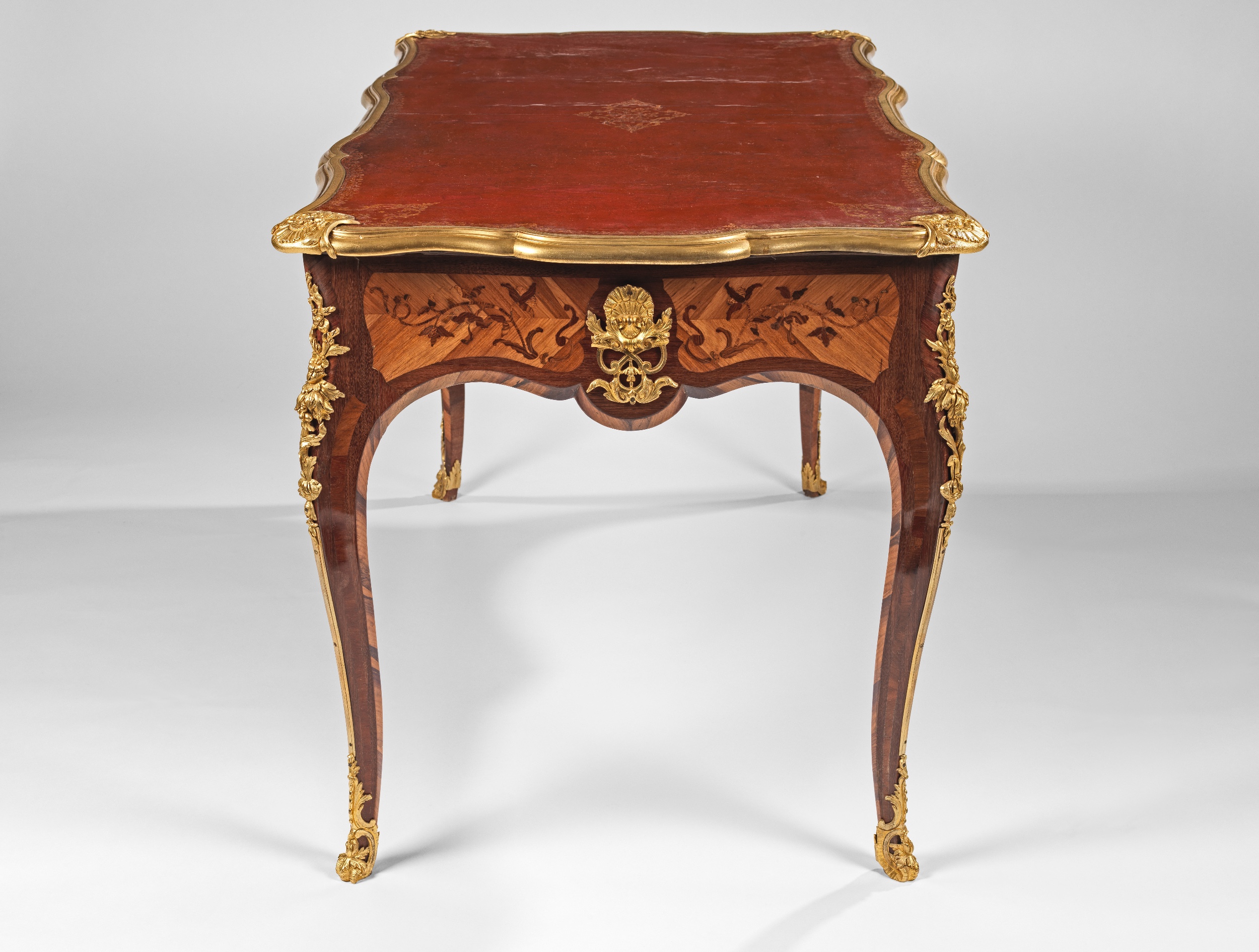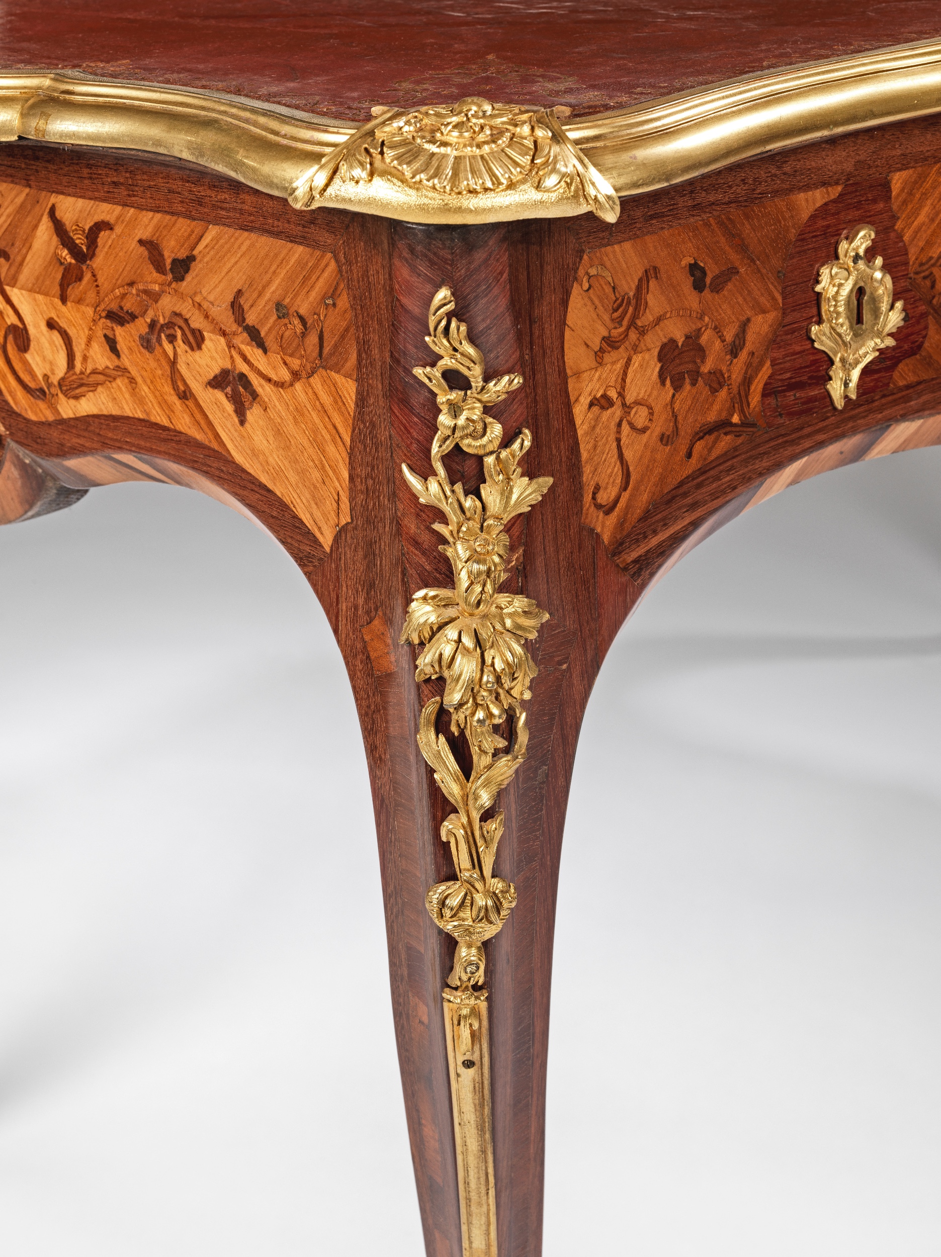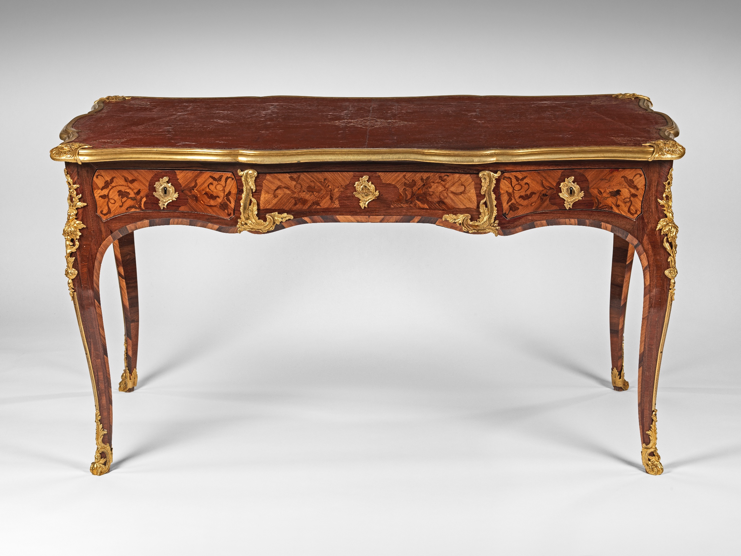 The four mysterious initials of the stamp B.V.R.B. concealed a dynasty of ébénistes of Netherlandish origin whose identity was only uncovered in 1957. Although all used the same Christian name and surname, Bernard II van Risenburgh was the first to stamp his furniture using the monogram BVRB; he is now regarded as the greatest ébéniste of the reign of Louis XV and his work can be seen in almost every major museum that has French Furniture. He specialized in furniture decorated with panels of Japanese lacquer, which he first supplied to the French queen, Marie Leszczinska, in 1737. He was also celebrated for his furniture veneered with floral marquetry, usually made from kingwood and tulipwood. At the end of his career, he supplied the nobility with the novel innovation of furniture mounted with Sèvres porcelain plaques. BVRB's pieces can also be recognized by their gilt bronze mounts, which he designed himself. The novel forms of these mounts appear only on his works and help to distinguish his furniture from that of other cabinetmakers. Throughout his career he worked almost exclusively with the important marchands-merciers, such as Lazare Duvaux and Thomas-Joachim Hébert. As a result, BVRB had no direct contact with his aristocratic and royal clientele. He kept a workshop on the Faubourg Saint-Antoine, in a less fashionable section of Paris than those of the ébénistes Charles Cressent and André-Charles Boulle.