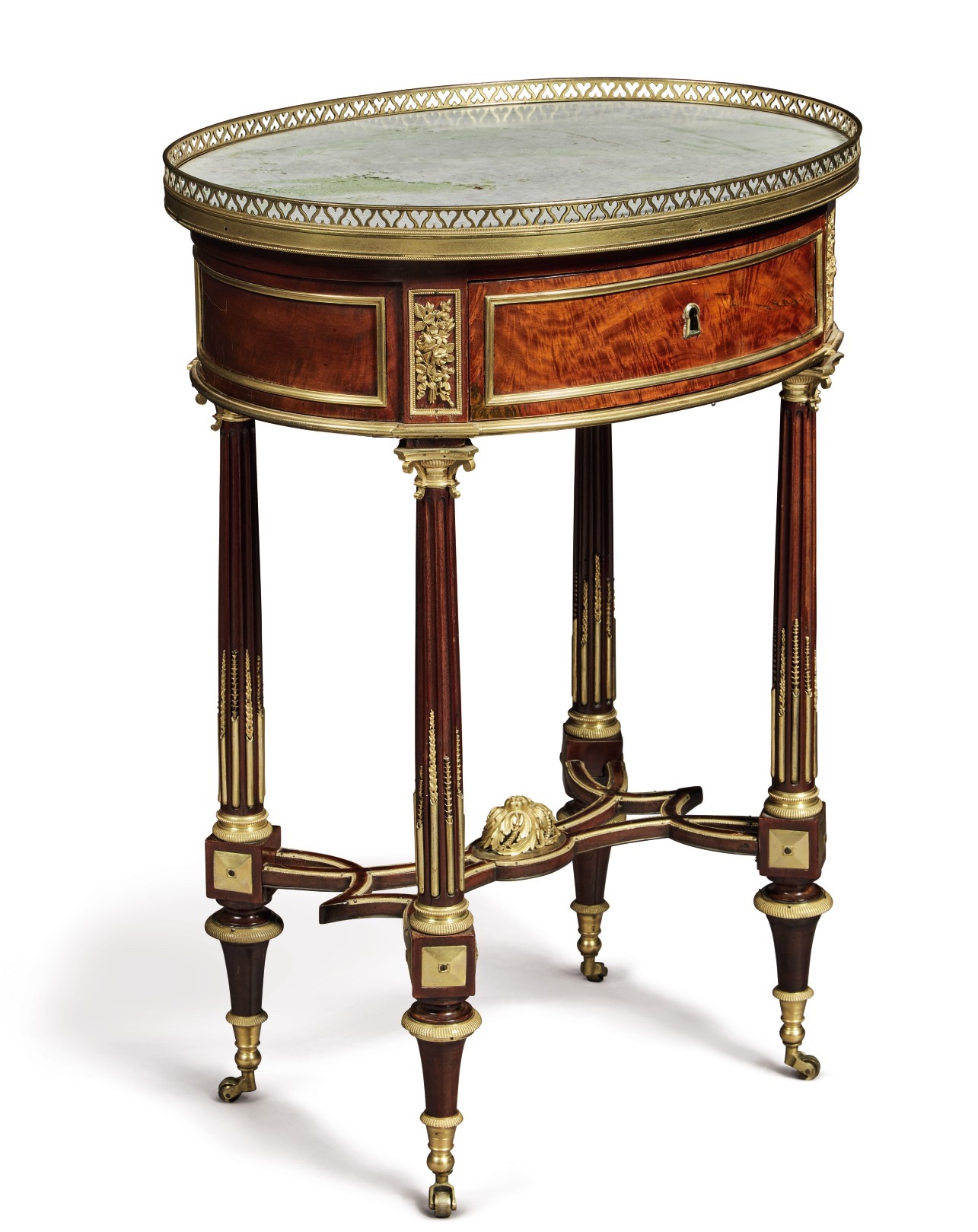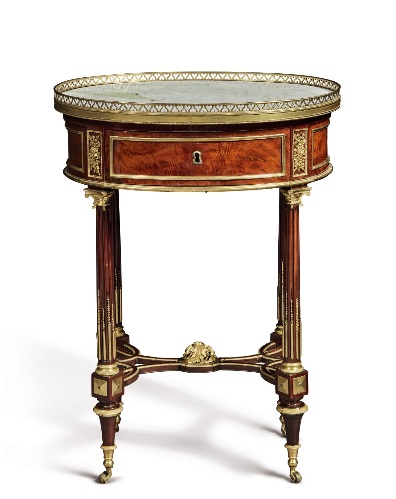 Like many of his contemporaries in the Parisian furniture trade, Papst was of German origin. He was an official supplier to the Royal Garde-Meuble in the final years of the Ancien Regime and continued to receive government commissions during the Empire and Restoration periods, participating in the Expositions des produits de l'industrie française in 1806 and 1819. This table is in a mature Louis XVI style and is very much in the manner of Papst's contemporary Adam Weisweiler. Another almost identical table of circular form by Papst was formerly in the collection of the Viscounts Astor at Cliveden, Buckinghamshire. The table was supplied to the Astor by the decorating firm Allard for the now vanished Drawing Room in c.1895. and is visible in a Country Life photo of the room taken in 1912.