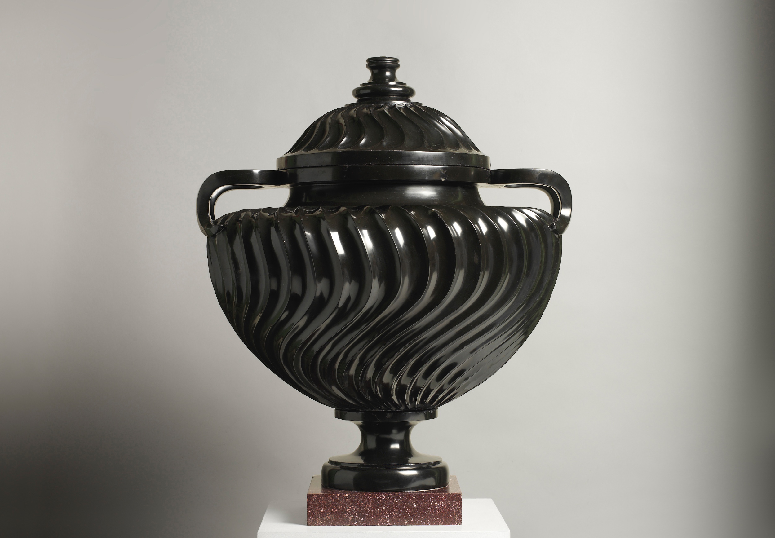 These vases belong at the very end of the Ancien Regime. They are of the very finest technical quality: a combination of chiselling, grinding and rifling of a difficult and very hard material… Indeed, vases were, as Josiah Wedgwood described, something of a “maniacal desire” in his time. They took many forms and were made of a wide variety of materials. The most expensive, however, were those made in hard [stones] such as porphyry”. To the latter class and for the same reasons may be added the Belgian black stone from which the present urns are hewn, though it was not of course as expensive as porphyry, a material restricted in the ancient world to imperial use, and in the early modern period to the re-use of surviving specimens from of old that had been transported to Rome.
