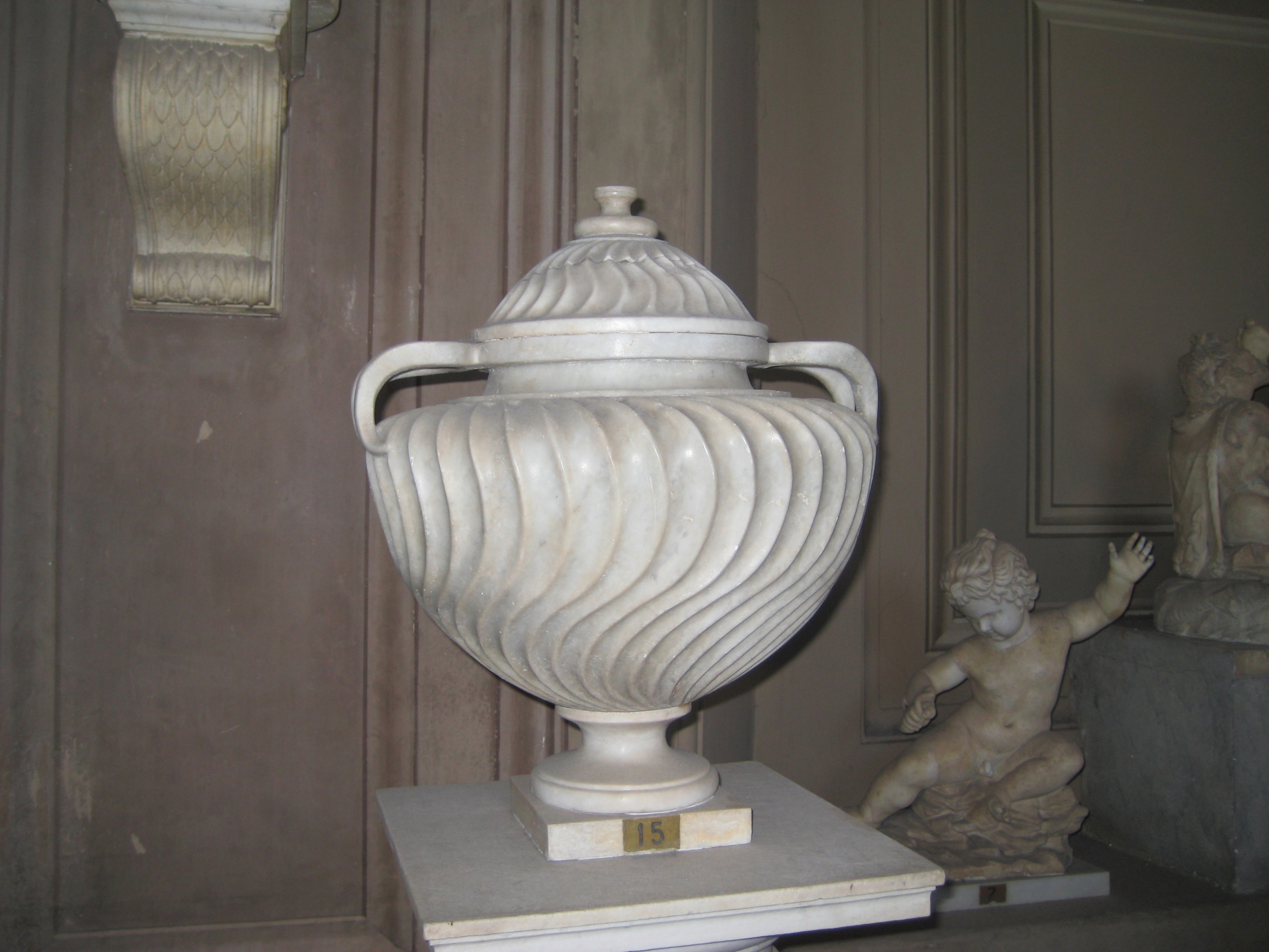 A classical original has recently been discovered for these urns, which had previously been regarded as clever 18th century adaptations of various other, similar, strigillated ancient Roman cinerary urns, as illustrated by Piranesi and others. In the Galleria dei Candelabri of the Museo Pio-Clementino in the Musei Vaticani, it is described in the latest catalogue as follows: