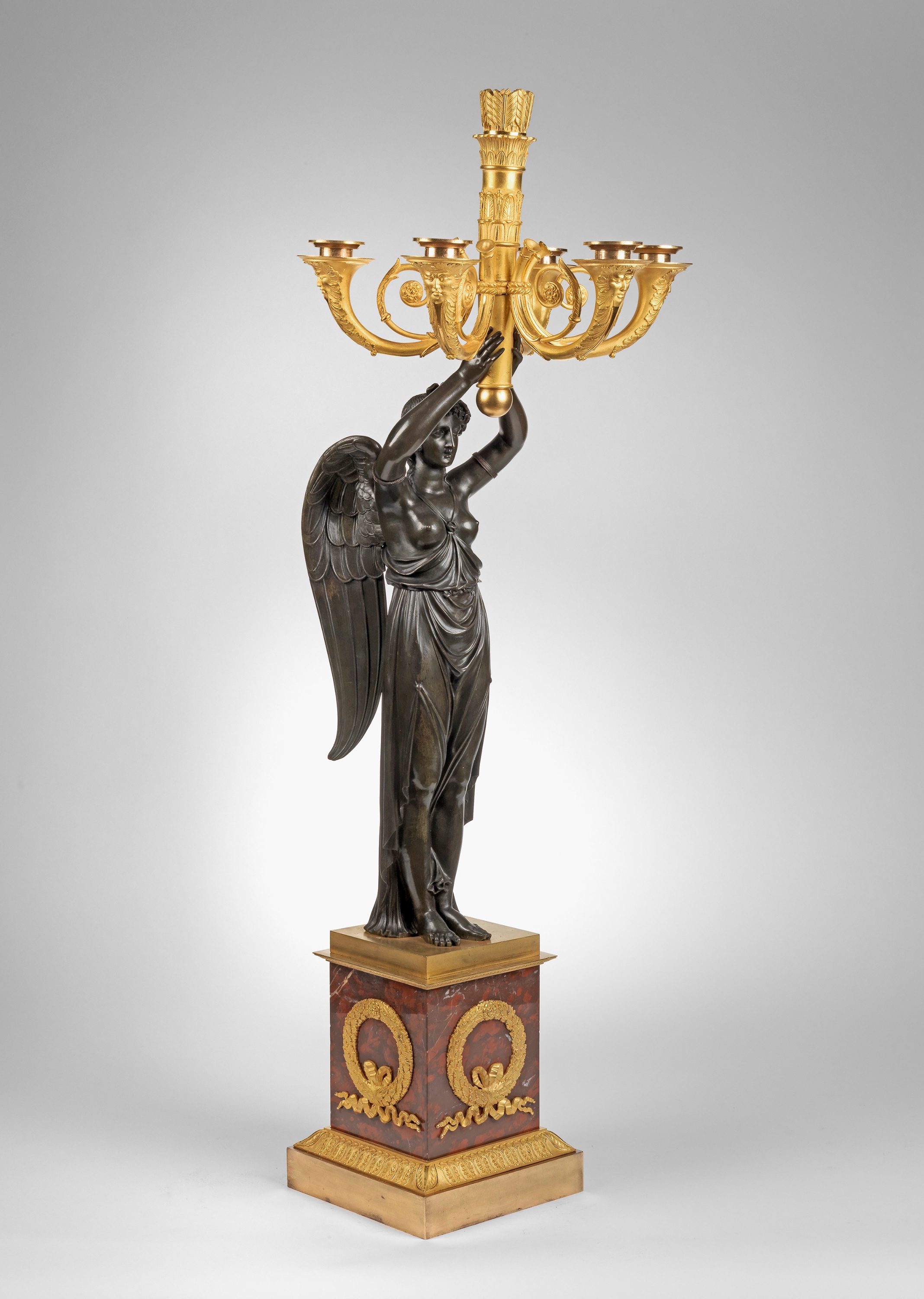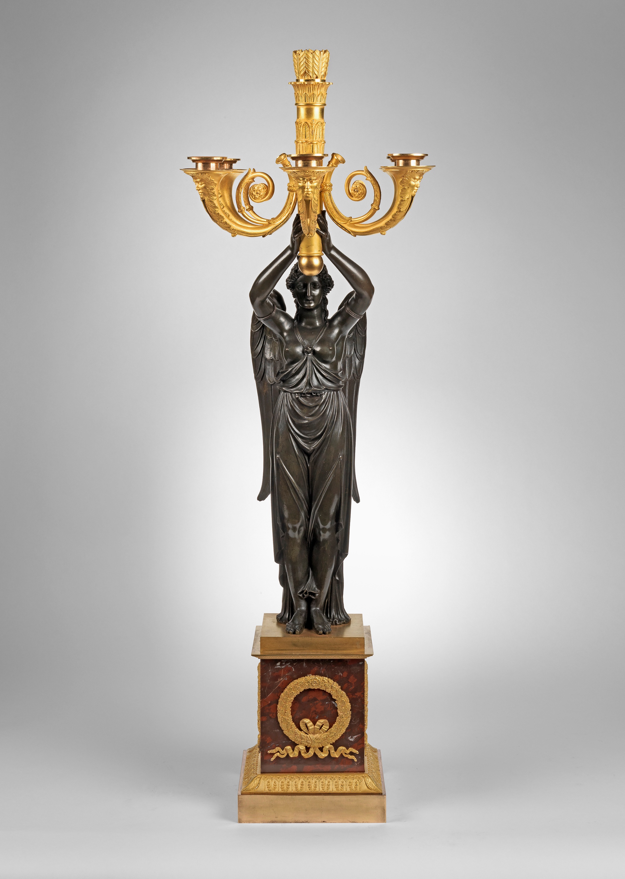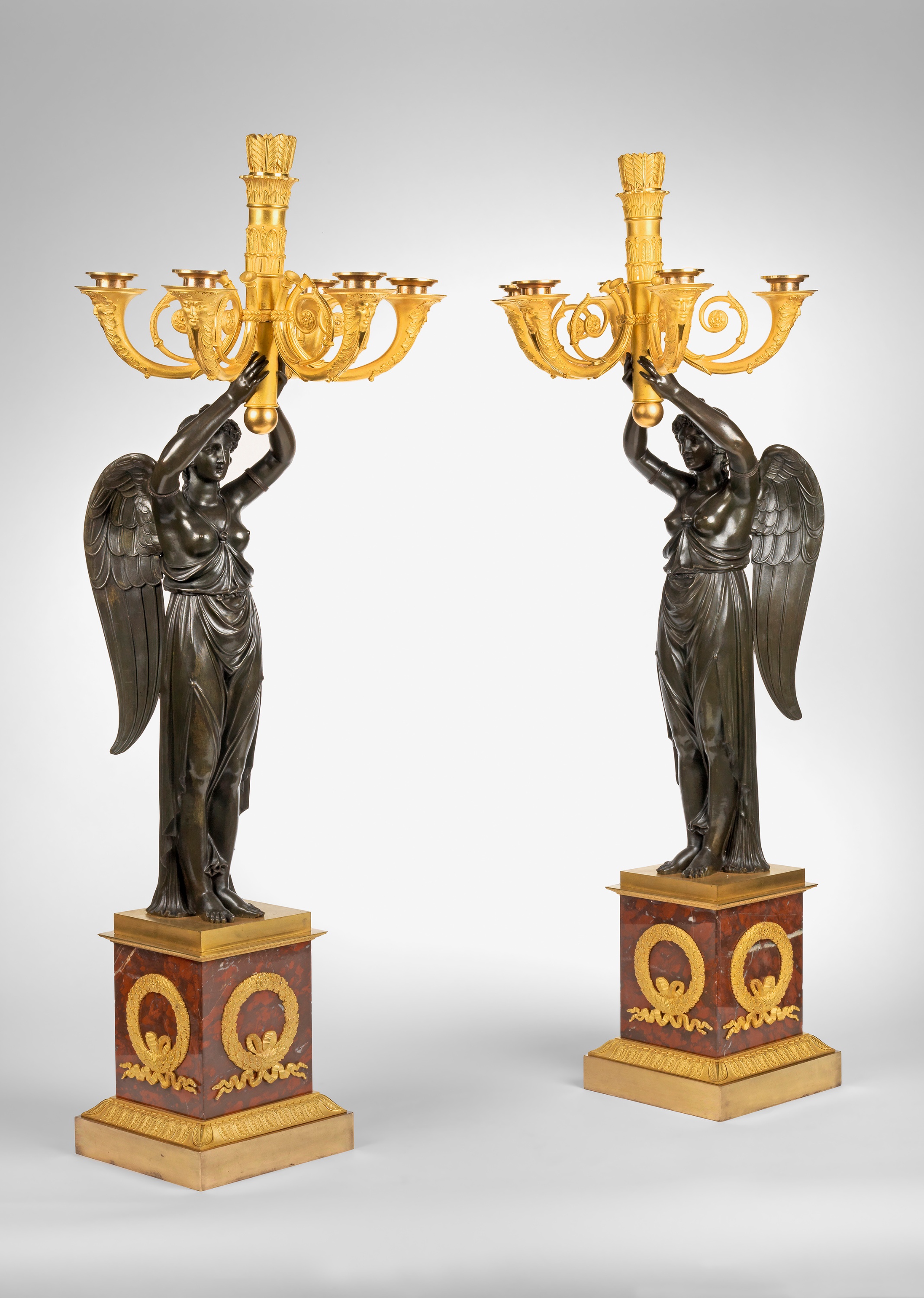 Les Bronzes Ornamentaux et les Objets Montes by Giacomo et Rozenn Wannenes p377 show a similar pair with the same square bases and ormolu wreaths and were made for the Russian Imperial family and are attributed to Thomire.