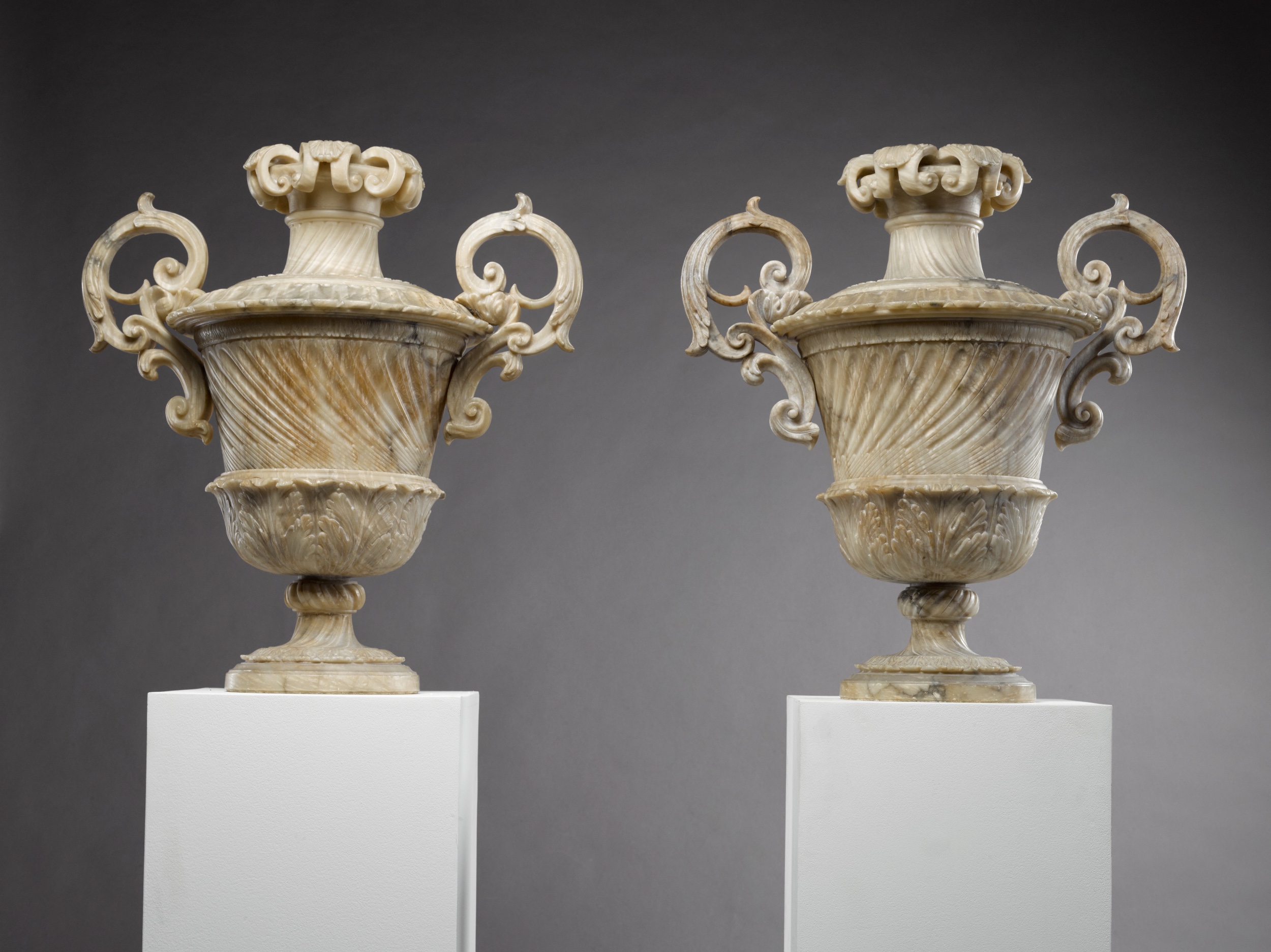 A Rare Pair of 18th-Century Sicilian Alabaster Vases. Circa 1750