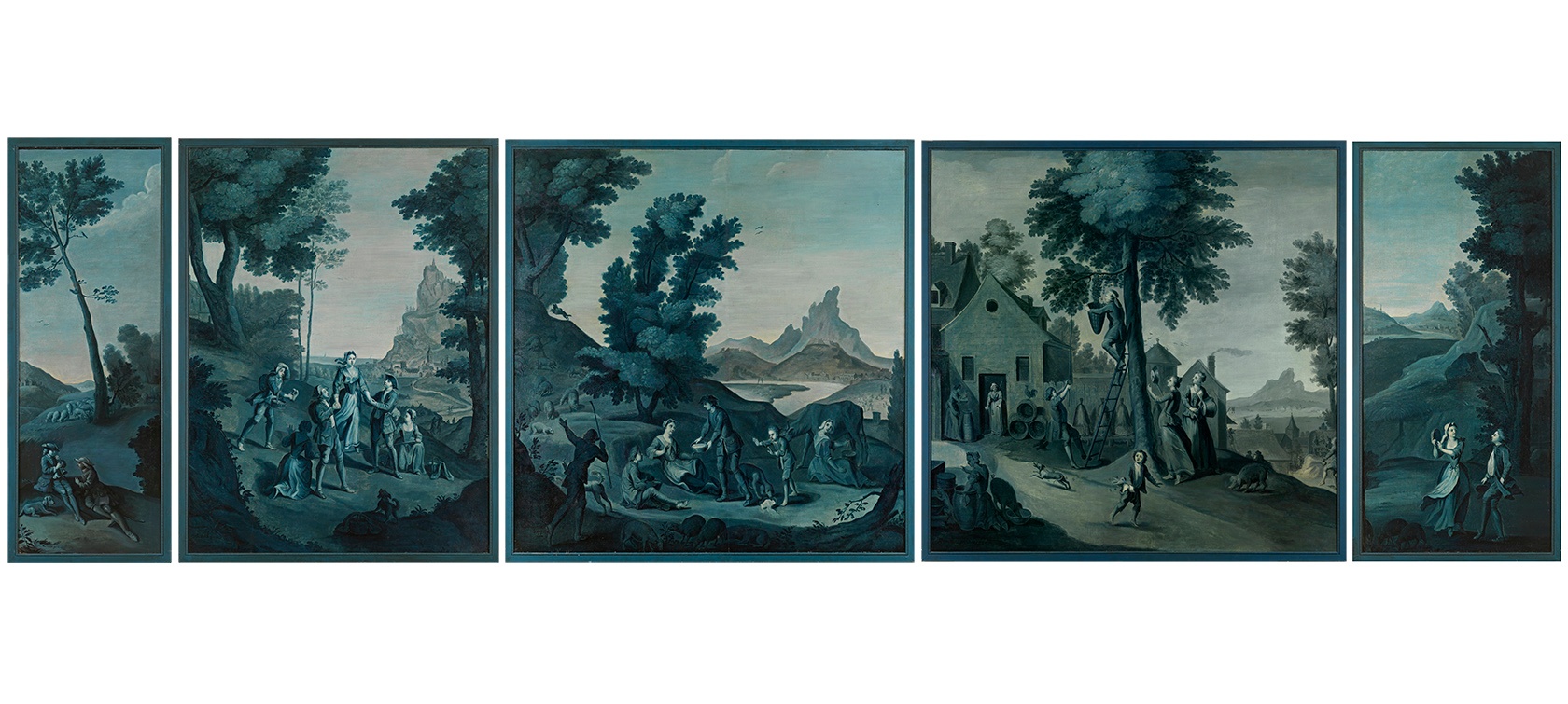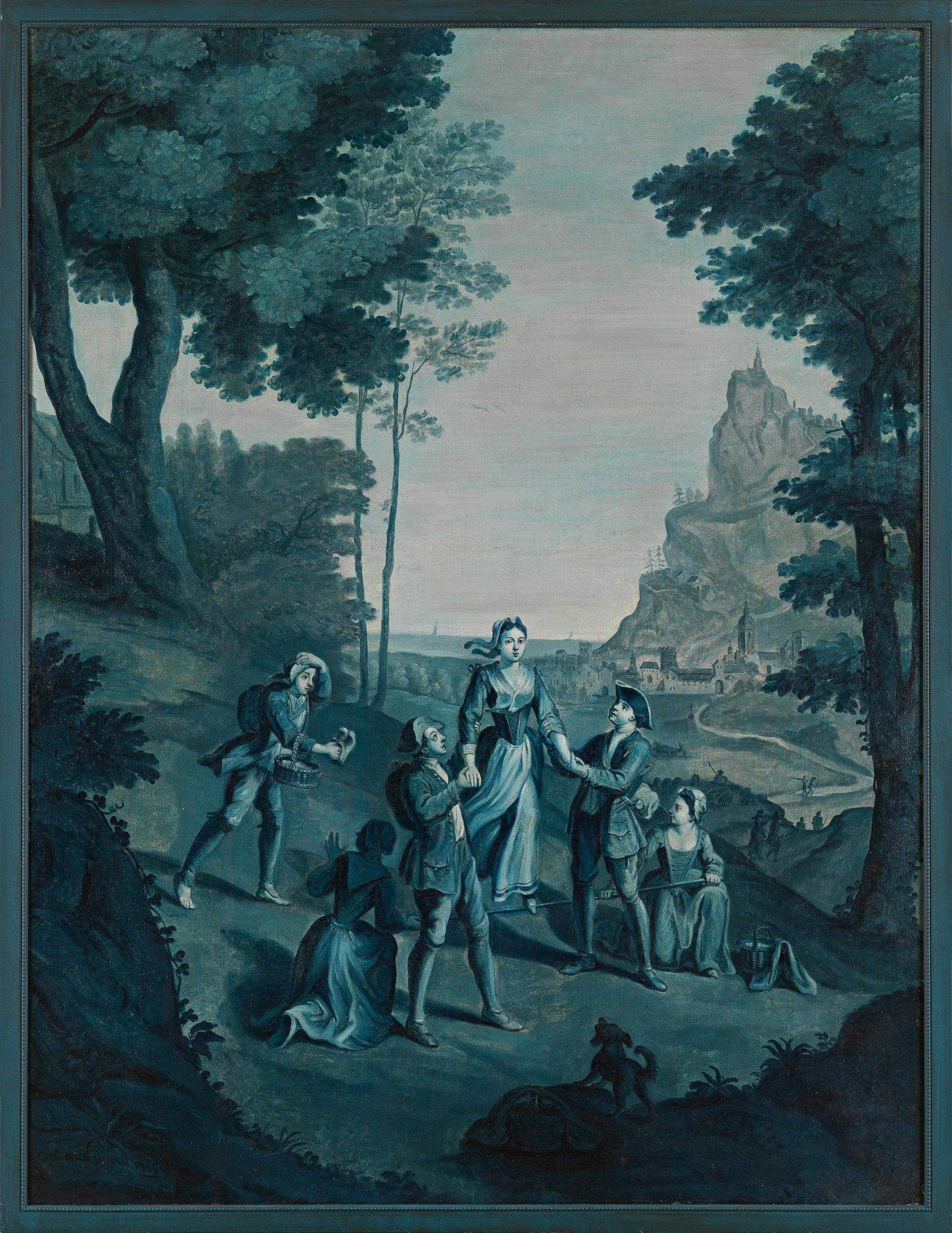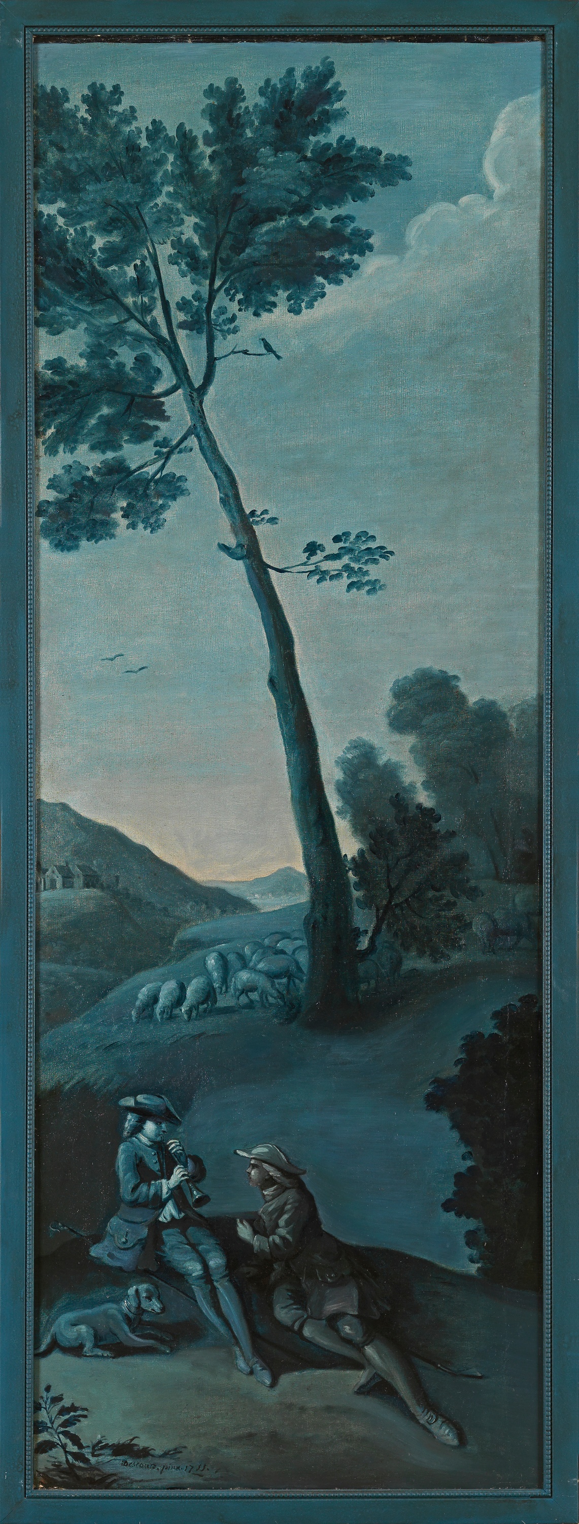 Part of the suite of eight decorative panels in shades of blue and white that the painter Michel-Hubert Descours produced in 1755 for the living room of his house in Bernay in the rue Grand-Bourg.