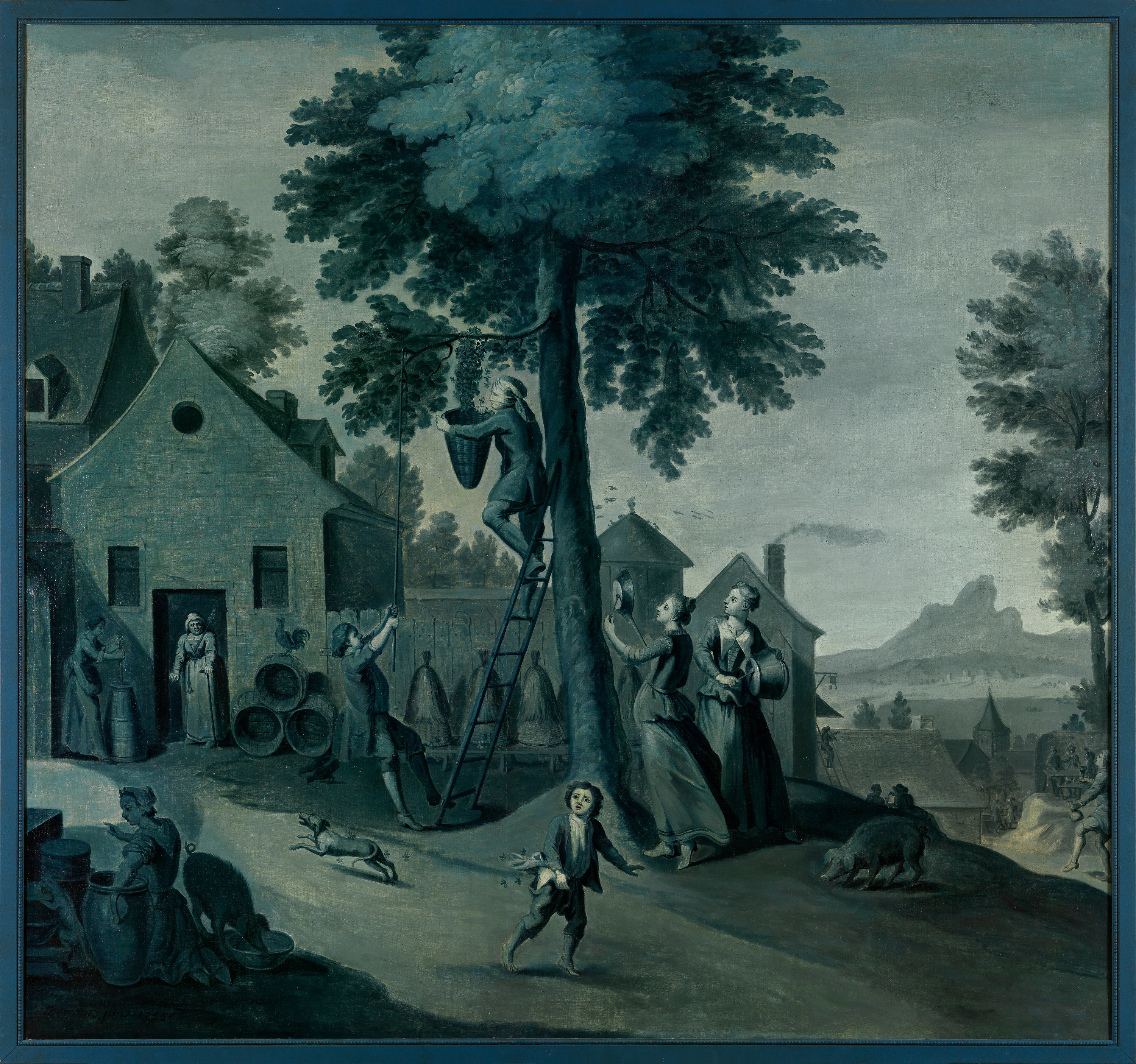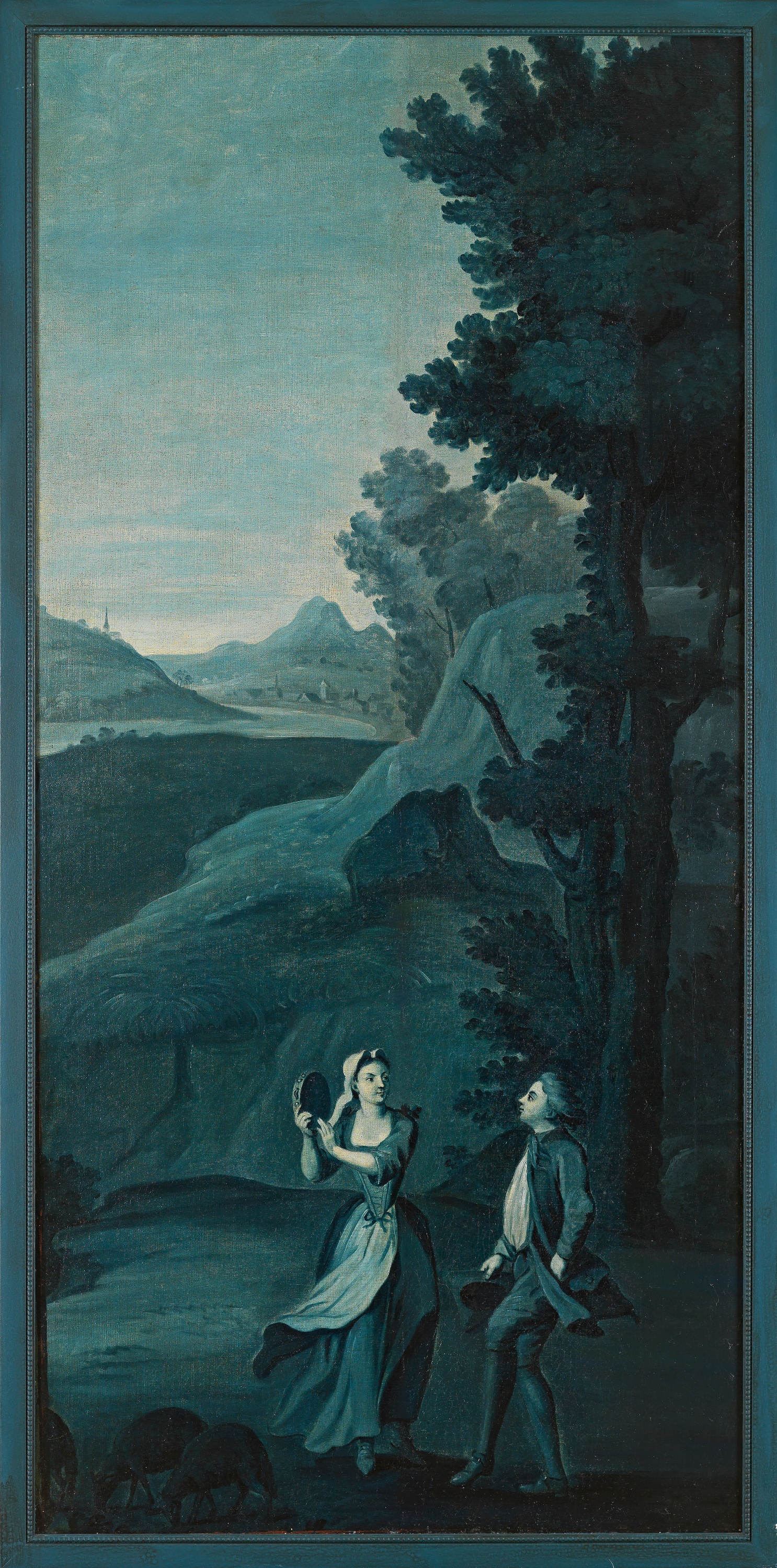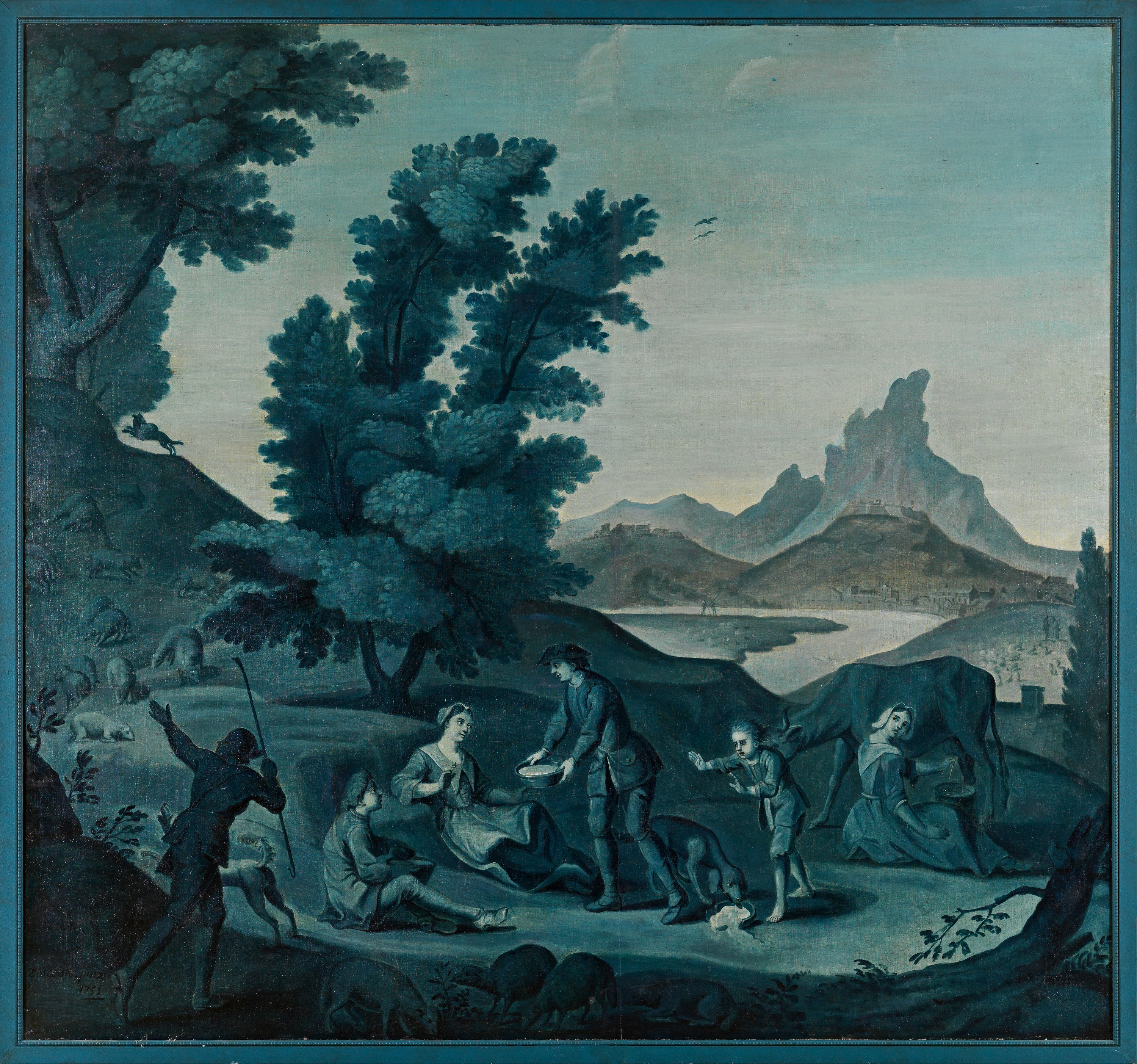 Part of the suite of eight decorative panels in shades of blue and white that the painter Michel-Hubert Descours produced in 1755 for the living room of his house in Bernay in the rue Grand-Bourg.