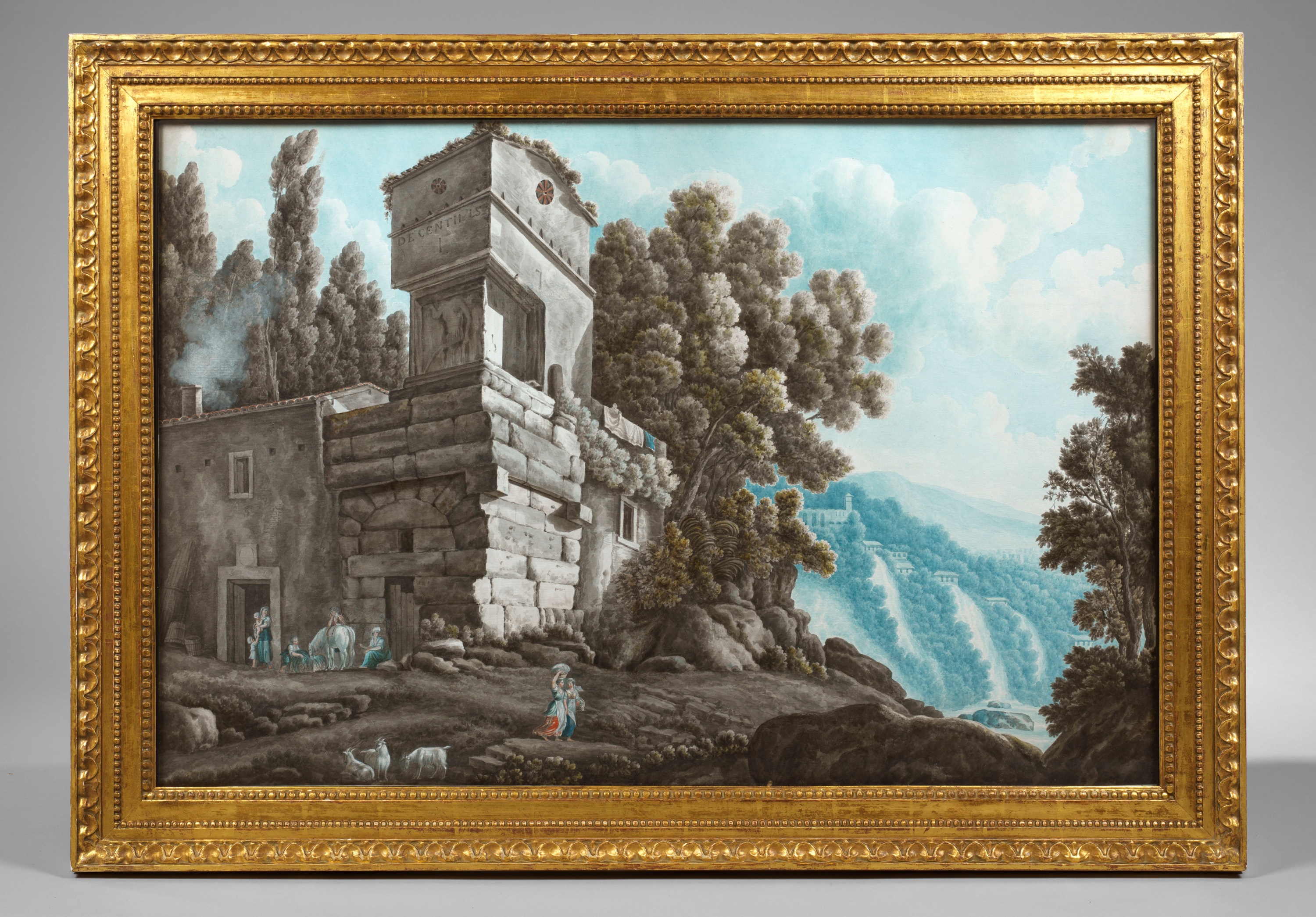 Abraham-Louis-Rodolphe Ducros was a Swiss painter, born in Moudon, Switzerland, on 21 July 1748, (he died Lausanne, 18 Feb 1810). From 1769 to 1771 he studied in Geneva at the private academy of Nicolas Henri Joseph Fassin. After a journey to Flanders he returned to Geneva, where he sketched and painted in watercolours in the countryside and became fascinated by the analysis and recording of natural phenomena. In 1776 he travelled to Rome and in 1778 found employment as a specialist in topographical landscapes with Nicolas ten Hove, a Dutch antiquary who was embarking on a journey through southern Italy, Sicily and Malta. Among the watercolour drawings that Ducros produced on that expedition are the Temple of Hercules at Agrigento (Amsterdam, Rijksmus.) and a View of the Harbour at Pozzuoli near Naples (U. Manchester, Whitworth A.G.).